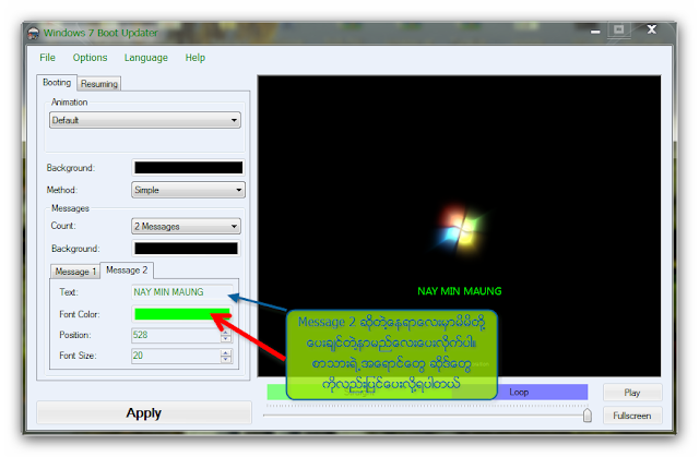 ကၽြန္ေတာ္တို႔ဒီတစ္ခါ Window 7 ဆိုတဲ႔စာသားေလးေနရာမွာSoftware ေလးသံုးၿပီးကိုယ္႔နာမည္ေလးကိုယ္